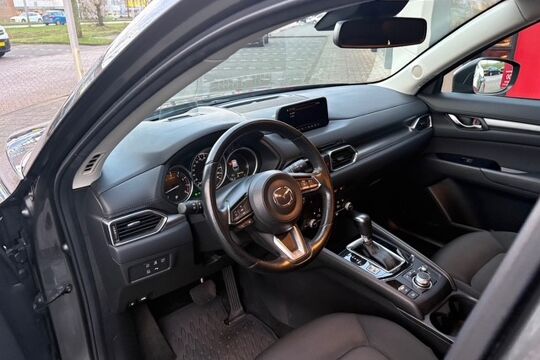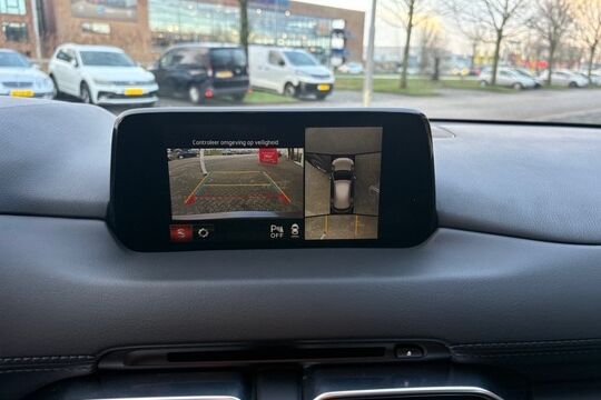 De nieuwste veiligheidssystemen komen in deze Mazda CX-5 samen. Tijdens de rit hebt u altijd een bijrijder, want de verkeersbord-detectie leest de borden langs de weg en projecteert ze voor u op het instrumentarium. Het Lane-keeping systeem zorgt voor een automatisch constante positie binnen de rijstrook. Afdwalen is uitgesloten. Kop-staartbotsingen vormen een belangrijk deel van de meest voorkomende aanrijdingen. De forward collision warning van deze auto voorkomt zulke botsingen geheel of reduceert de ernst van de schade aanzienlijk. Bovenop deze veiligheidsfeatures heeft deze Mazda bovendien head-up display, dodehoekdetectie, hill hold functie, brake assist, vermoeidheidsherkenning en bandenspanningcontrolesysteem.